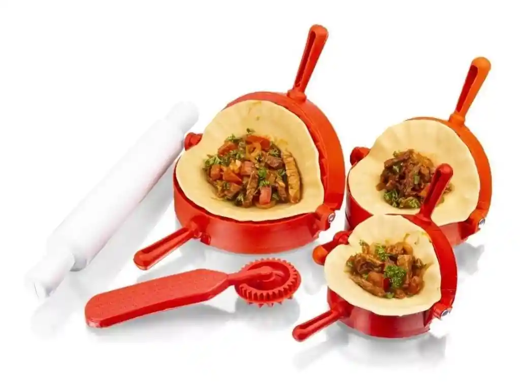 El Kit de moldes de hacer empanadas trae 3 tamaños, adicional a esto trae el rodillo y un cortador de pasta (sirve como decorador de galletas). total 5 artículos, Con el empamagic vas a tener empanadas de mismo tamaño y bien decoradas. y con el cortapasta, podrás decorar galletas, decorar masas y ser creativo en la cocina. Diámetro de los moldes: Pequeño: 8.5 cm Mediano: 10.5 cm Grande: 12.5 cm