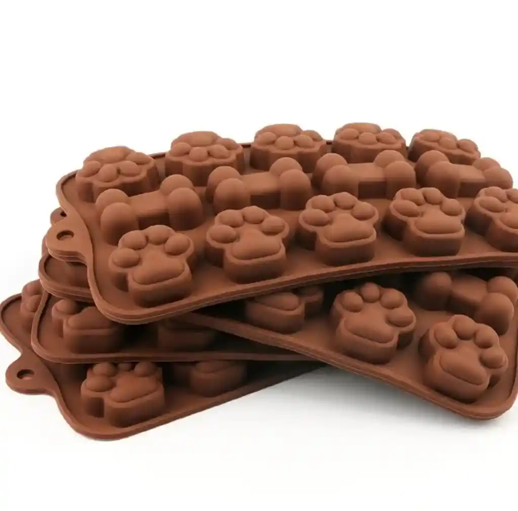 MOLDE DE SILICONA HUESOS Y HUELLAS PARA CHOCOLATES, DULCES, GELATINA, CUBITOS DE HIELO, 14 CAVIDADES