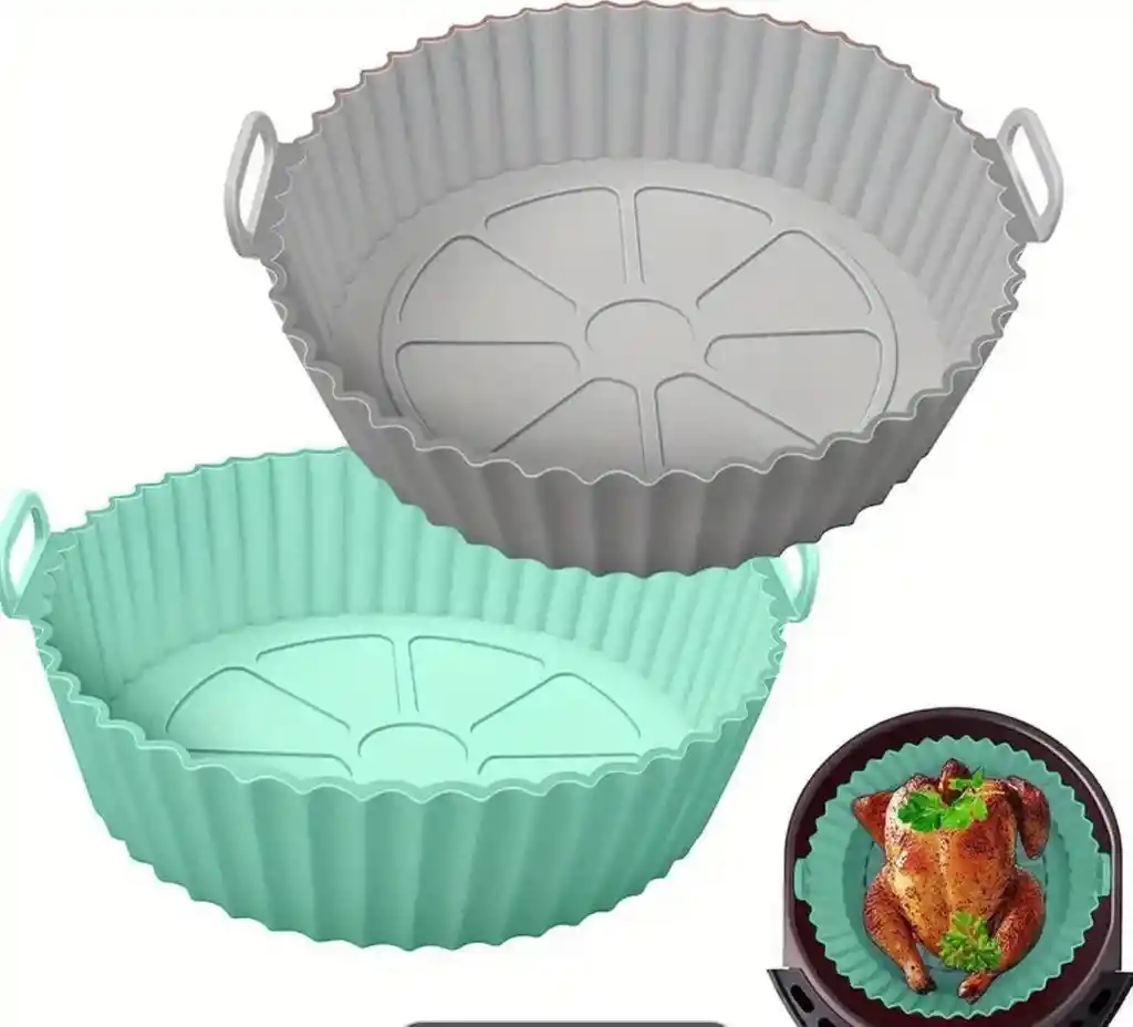 Detalles CARACTERÍSTICAS: - Flexible y resistente - Con estrías para facilitar la limpieza - Rango Temperatura: -40°C - 240°C - Dimensiones aproximadas: 15.5 cm de Base y 18 cm de Boca x 6 cm de alto x 1 mm de espesor - Calidad 100% garantizada, se puede acomodar al tamaño de tu freidora NOTA: NO soporta llama de fuego directamente, exclusivo para uso en freidora de aire COLORES SURTIDOS