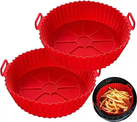 - Con estrías para facilitar la limpieza - Rango Temperatura: -40°C - 240°C - Dimensiones aproximadas: 15.5 cm de Base y 18 cm de Boca x 6 cm de alto x 1 mm de espesor - Calidad 100% garantizada, se puede acomodar al tamaño de tu freidora Fácil limpieza y apta para lavavajillas: nuestra olla de silicona es tan suave y flexible que solo tienes que voltearla del revés y lavarla con agua tibia. No más limpieza de la cesta de la freidora de aire, mantiene tu freidora de aire libre de residuos de alimentos, grasa y mugre sin comprometer la vida útil de tu freidora de aire. Completamente apto para lavavajillas, lo que te permite evitar el problema de lavar a mano. Accesorios esenciales para freidora de aire: olla de silicona reutilizable para freidora de aire. No más limpieza de la cesta de la freidora de aire, lo que te hace más dispuesto a utilizar la freidora de aire y disfrutar de alimentos más sabrosos al mismo tiempo. Di adiós a los residuos pegajosos y quemados. Se adapta perfectamente a freidora de aire de 3.6 L a 7.2 L: líneas de silicona para freidora de aire perfectas para freidora de aire compatible con freidora de aire Gourmia, Ninja, Phillips, Nuwave, Gowise, Dash, Cozyna, Cosori, Ultrean, Vremi, Power XL. Estos accesorios de horno freidora de aire también se pueden utilizar en horno, microondas o olla a presión. Resistente al calor y apta para alimentos: nuestra olla de silicona está hecha de silicona pura sin BPA y apta para uso alimentario. que soporta hasta 464 °F y hasta -40 °F para freír al aire, cocinar al vapor y hornear en horno. Nuestro forro de silicona para freidora de aire es reutilizable, no se deforma ni daña después de cientos de usos, es el accesorio de freidora de aire más valioso. - Flexible y resistente