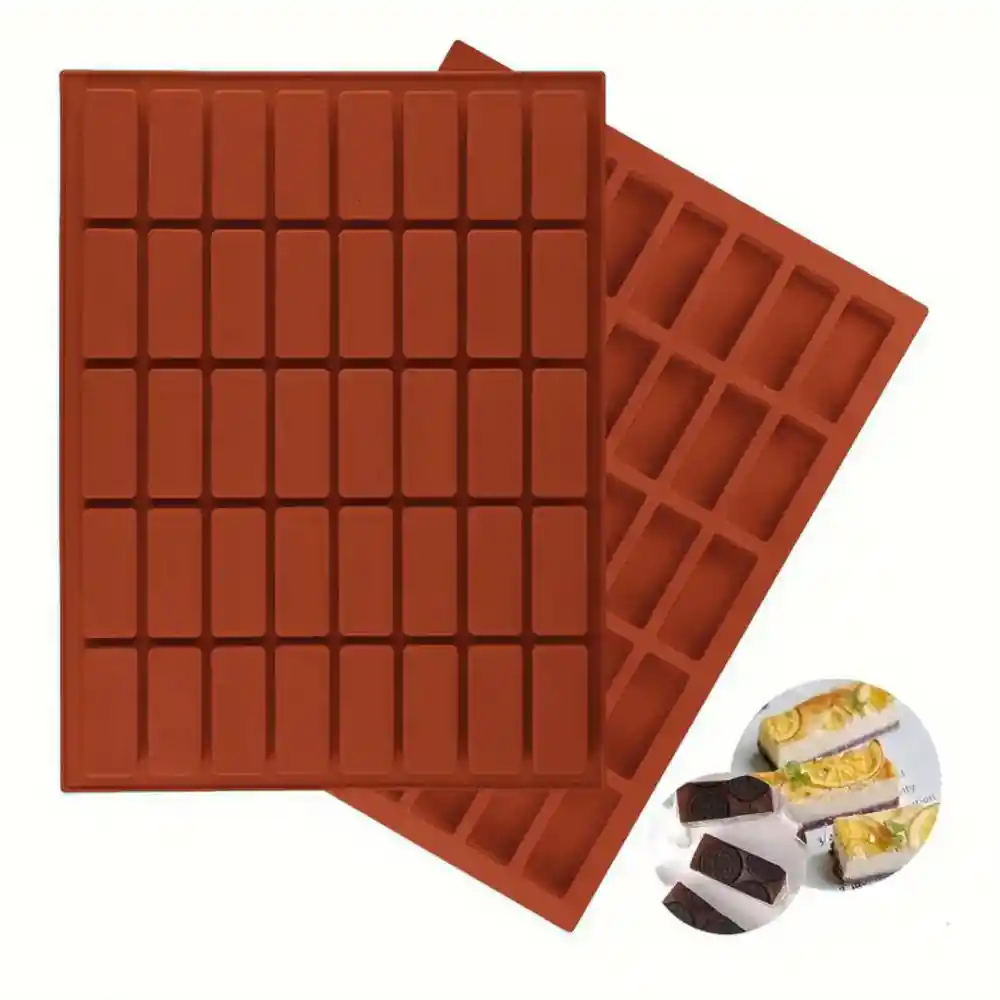 Molde mini barritas rectangulares, fabricado en silicona de alta calidad de grado alimenticio, son resistentes al calor y tienen una amplia tolerancia a la temperatura de -60° hasta 230°.Ideal para hacer bombones, gelatinas, gomas postres, hielos y más. Se puede usar tanto en frío, horno o congelador Medidas del molde bandeja 29.5 cm largo x 22 cm ancho x 1.2 cm/ Cavidades 5 cm X 1.9 cm x 1.2 cm profundidad