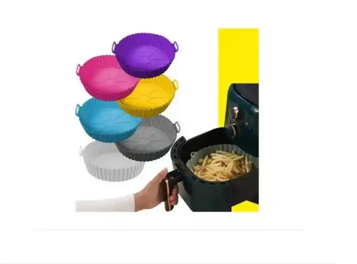 Molde Protector Siliconado antiadherente resistente al calor para Freidoras al Aire! Características: Tamaño: diámetro inferior 13cm, diámetro de apertura 16 cm, altura 6 cm -Está hecha de gel de sílice de alta calidad, suave, no tóxico, sin BPA, resistente a la temperatura, seguro y duradero, y tiene una larga vida útil. -El Diseño curvo único en la parte inferior garantiza una mejor circulación de aire en la freidora de aire y reduce el tiempo de cocción. -El Diseño único en forma de pétalo ranurado de drenaje asegura que el jugo no se adhiere a la comida, lo que es conveniente para la limpieza después del uso (soporte de limpieza de lavavajillas). -Está Equipado con asas, puede evitar quemaduras al sacar el hervidor de silicona y proteger las manos. Puedes usarlo con confianza. -Este molde de silicona es un excelente sustituto para el papel de pergamino desechable y es adecuado para freidoras de aire bajo 4,5 pulgadas. Especificaciones: Material: silicona de grado alimenticio Resistencia a la temperatura: -40°-240°, Evitar el fuego abierto Gramo peso: alrededor de 51 gramos Tamaño: diámetro inferior 13cm, diámetro de apertura 16 cm, altura 6 cm Paquete incluido: 1 pieza de silicona para freidoras de aire. Garantía sobre defectos de fabricación.