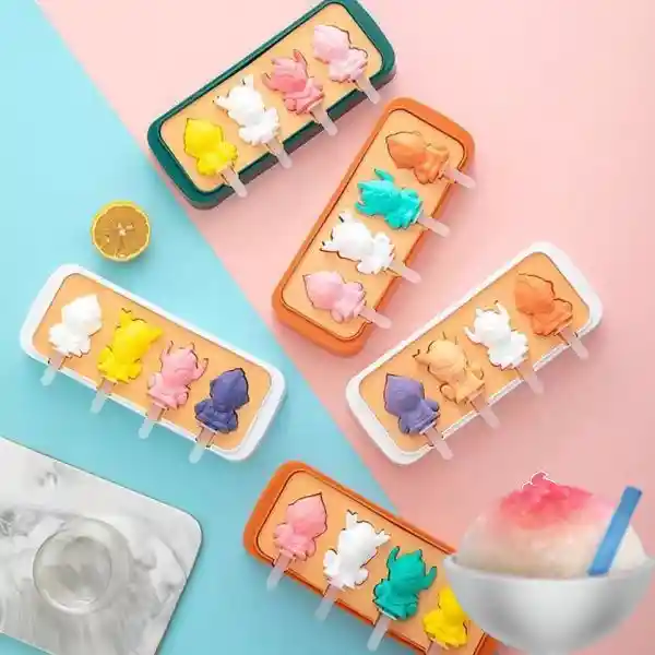 Este molde de silicona para helado, es práctico para hacer tus helado en casa de manera creativa. Es fácil de usar y de lavar. Podrás aprovechar un día soleado para compartir con tu familia un delicioso helado. Sus figuras animadas va a hacer divertida su preparación, al congelarse puedes cogerla con su práctico palito de paleta que sostendrá tu helado mientras lo disfrutas, sin ensuciarte.