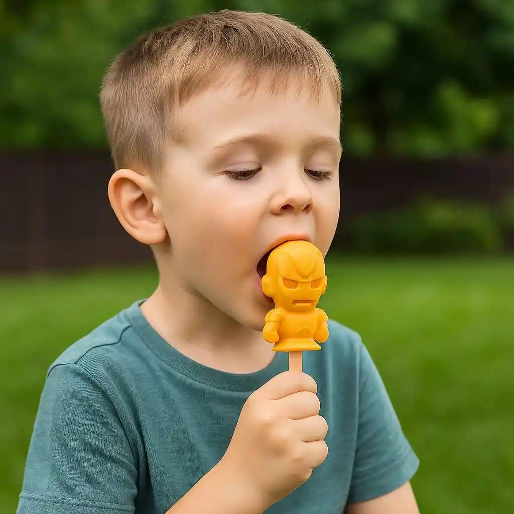 Este molde de silicona para helado, es práctico para hacer tus helado en casa de manera creativa. Es fácil de usar y de lavar. Podrás aprovechar un día soleado para compartir con tu familia un delicioso helado. Sus figuras animadas va a hacer divertida su preparación, al congelarse puedes cogerla con su práctico palito de paleta que sostendrá tu helado mientras lo disfrutas, sin ensuciarte.