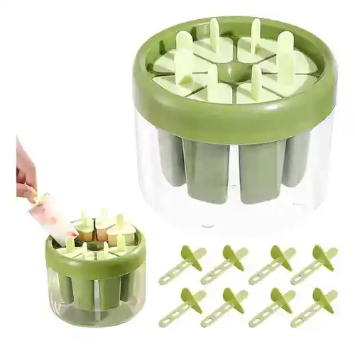 Te encantaría disfrutar de paletas de helado refrescantes y llenas de sabor siempre que quieras? Nuestro Set de 8 Moldes para Paletas de Helado hace que esto sea posible, permitiéndote hacer tus propias creaciones de helado en casa. Con ocho moldes a tu disposición, puedes dar rienda suelta a tu creatividad y probar diferentes sabores e ingredientes. Desde frutas frescas hasta yogur o incluso capas de chocolate, las posibilidades son infinitas. Sorprende a tus invitados con un delicioso postre helado en tu próxima barbacoa, picnic o fiesta en la piscina. Haz paletas en casa y ahorra en comparación con comprarlas en la tienda. Involucra a los niños en la creación de sus propias paletas. Es una actividad creativa y divertida para compartir en familia. amaño 13 x 11 cm