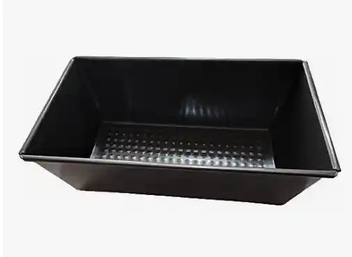 Molde rectangular tortas, pan, postres y más. Material aluminio antiadherente. Ideal para productos horneados y también para productos fríos. Medidas del molde: Base 18 Cms x 8.7 Cms. Altura 7.5 Cms. Boca 21 Cms x 11. 8 Cms.