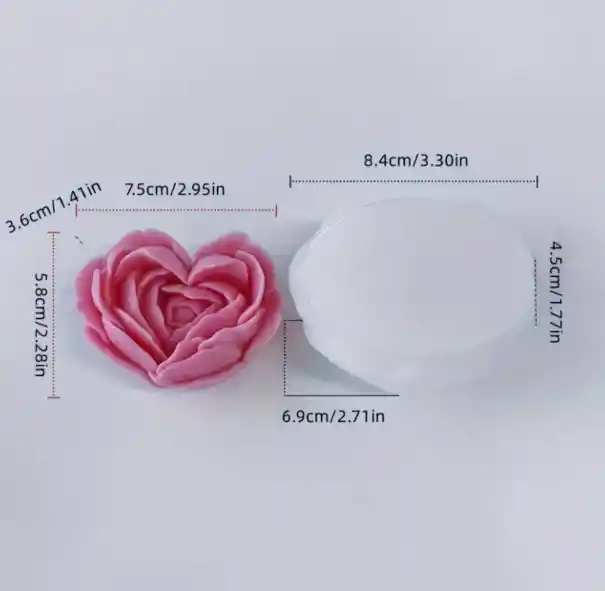 En Panchiscakes, te ofrecemos este hermoso Molde de silicona de Flor Rosa en forma de Corazones para Velas de Aromaterapia, Tartas de Mousse y Jabones Hechos a Mano - Diseño Floral Rosa con Centro de Corazón perfecto para decorar y para recordatorios. Medida del molde :8,4 cm de diámetro x 9,3 cm de alto x 6,9 cm de grosor Manejamos gran variedad de insumos para velas y moldes , somos PANCHISCAKES.