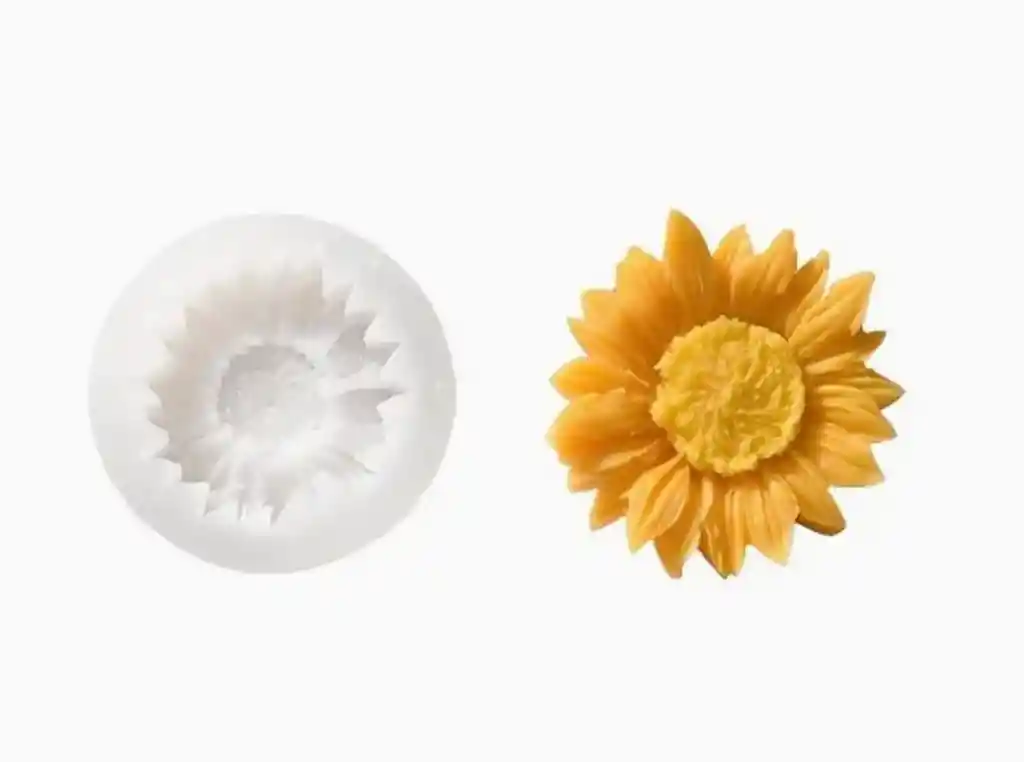 En Panchiscakes, te ofrecemos este hermoso Molde de silicona en forma de Girasol para Velas de Aromaterapia, Jabones Hechos a Mano Medida del molde 6cm de diámetro x 1,5 cm de ancho. Medida del girasol: 5 cm de diametro x 1,2 cm de anch