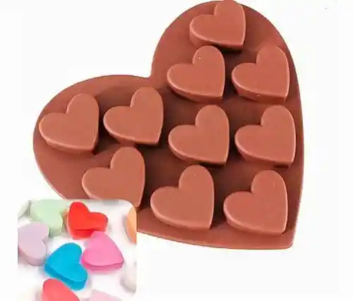 Molde silicona flexible. Figura corazones x 10 cavidades. Fabricado en silicona grado alimenticio. Resiste bajas y altas temperaturas entre -40 y 230 grados centígrados. Es un molde flexible, suave, antiadherente y de fácil lavado. Ideal para chocolatería, fondant y más. Medidas del molde: 15 x 14.5 Cms. Corazón: 3 x 3 Cms y 1 Cms de profundidad