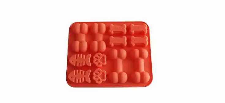 Molde silicona flexible. Figura huesitos, huellitas y peces. Fabricado en silicona grado alimenticio. Es un molde flexible, suave, antiadherente y de fácil lavado. Resiste bajas y altas temperaturas entre -40 y 230 grados centígrados. Medidas del molde 18 x 14.5 Cms. Huesitos grandes 7 x 4 Cms. Huesitos pequeños 4 x 2 Cms. Peces 4 x 3 Cms. Profundidad 1.3 Cms.
