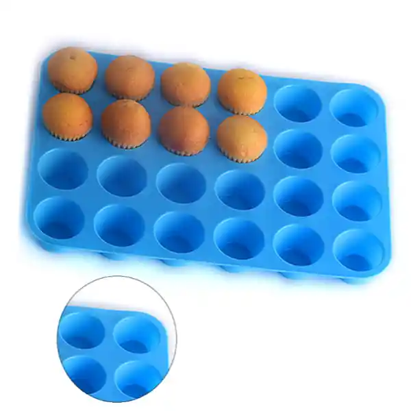 Fabricado en silicona de grado alimenticio resistente al calor y tiene una amplia tolerancia a la temperatura desde -0° C hasta 230° C, seguros para su uso en lavavajillas, horno, congelador, nevera y microondas. .Además cuenta con un revestimiento antiadherente hace que la liberación de alimentos y la limpieza sean muy fáciles! Medidas del molde: 35.5cm largo x 24.6cm ancho / cavidad : 5cm diámetro x 2.5cm profundidad
