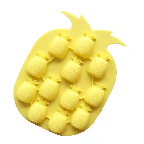Este práctico molde de silicona ideal para congelar y moldear alimentos como bombones de chocolate, gomitas, postrecitos, gelatinas, puede añadir hielos con formas de piña a cocteles y bebidas frias. Bandeja redonda de 18.5 x 14.3 x 2 cms con cavidades de 3 x 2.5 de cada piñita. Profundidad de 1 cm