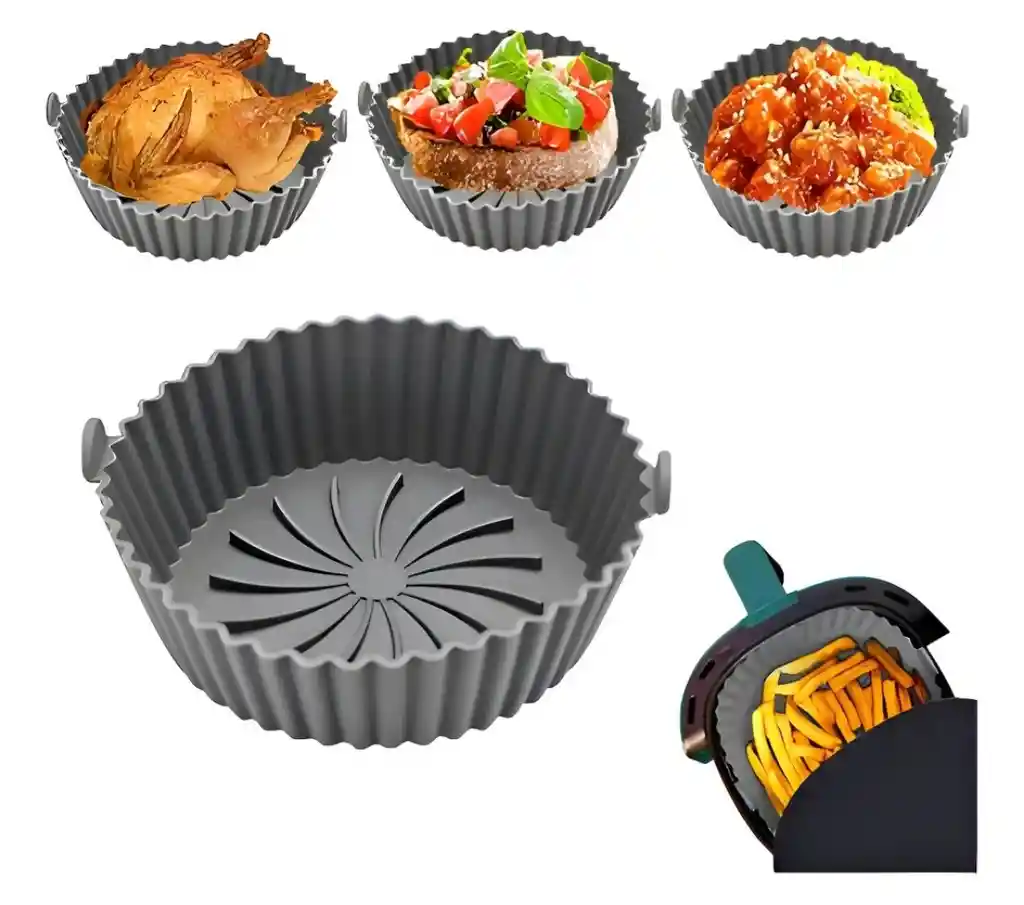 ¡Cocina más fácil, limpio y sin que se pegue! Este práctico set de 3 moldes de silicona es ideal para usar en tu air fryer, horno o cocina diaria. ✅ Incluye 3 tamaños diferentes Perfectos para preparar distintas porciones y recetas. ✅ Material 100% silicona antiadherente Los alimentos no se pegan, facilitando la cocción y el desmolde. ✅ Fácil limpieza Se lavan rápidamente a mano o en lavavajillas. ✅ Alta resistencia al calor Soportan altas temperaturas sin deformarse. ✅ Reutilizables y duraderos Ahorra dinero evitando papel o moldes desechables. •Ideales para: carnes, pollo, papas, repostería y más. •Color: Gris Importante: El producto incluye únicamente los 3 moldes de silicona. Los demás elementos o accesorios que aparecen en las imágenes son solo para ambientación y no están incluidos.