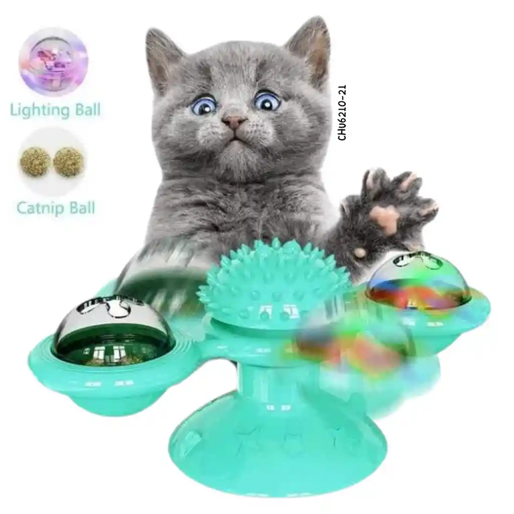 Molino interactivo, con luces y catnip. Se adhiere facilmente a superficies lisas y limpias.