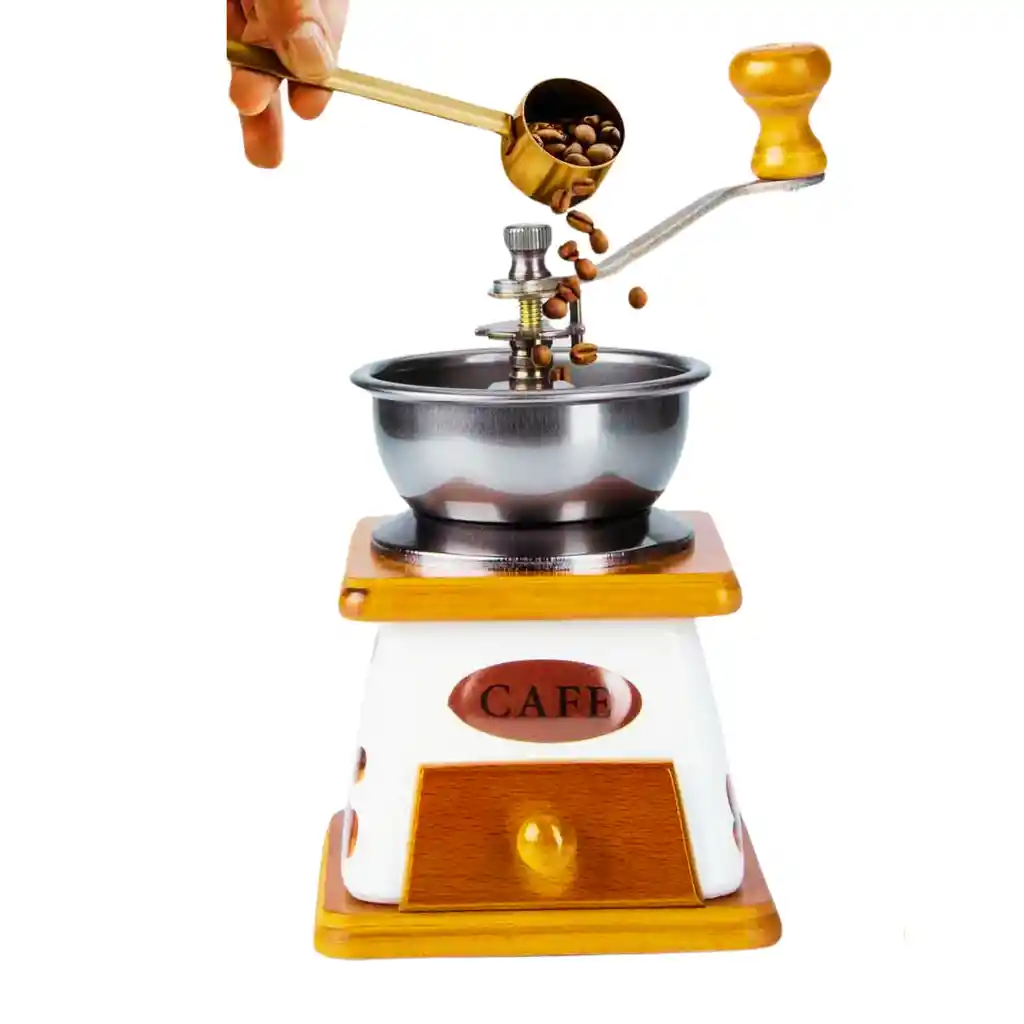 Molino De Café Manual En Madera Y Cerámica Vintage