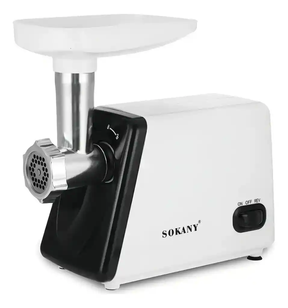 Molino procesador picador eléctrico Sokany con accesorios intercambiables para alimentos 2500W / SK-312 FÁCIL DE LIMPIAR: Cada pieza se puede desarmar para limpiar el tubo y la bandeja por separado, lave a mano. FÁCIL DE OPERAR: Solo arme de acuerdo al instructivo, es muy sencillo. Cuenta con un mismo botón para encender, apagar y retroceder. ¡Con alta capacidad de trabajo eficiente, más rápido y sin esfuerzo! MUELE DIFERENTES TIPOS DE CARNE: Puede moler carne de res, cerdo, pollo, pavo y otras carnes. Más saludable y económico en comparación con la carne envasada. INCLUYE: Máquina, tubo de enema, cubierta circular para pastel de carne, círculo de enema, círculo para pastel de carne, cuchillo redondo de agujeros pequeños de 5 mm y otro de agujeros de 8 mm, cuchillo de cuatro hojas, tornillo, tubo por donde desciende la carne, bandeja para carne y tubo de empuje. CARACTERÍSTICAS: Molino de carne eléctrico, fácil de usar. Poder: 2500 W Voltaje: 110 V Cuerpo de plástico. Tubo, cuchillas y tornillo triturador de acero inoxidable. Frecuencia: 50-60 Hz. No afectará el sabor de su carne, ya que está hecho de material de grado alimenticio. Cuenta con gomas antideslizantes para mayor firmeza al operar. Cable de 1 metro. Paquete incluido: - 1 x Picadora de carne eléctrica - 1 x Placas de corte - 1 x Cubierta del anillo de fijación - 5 x Accesorios para salchichas - 1 x Bandeja de comida - 1 x Pergamino - 1 x Cuchilla.