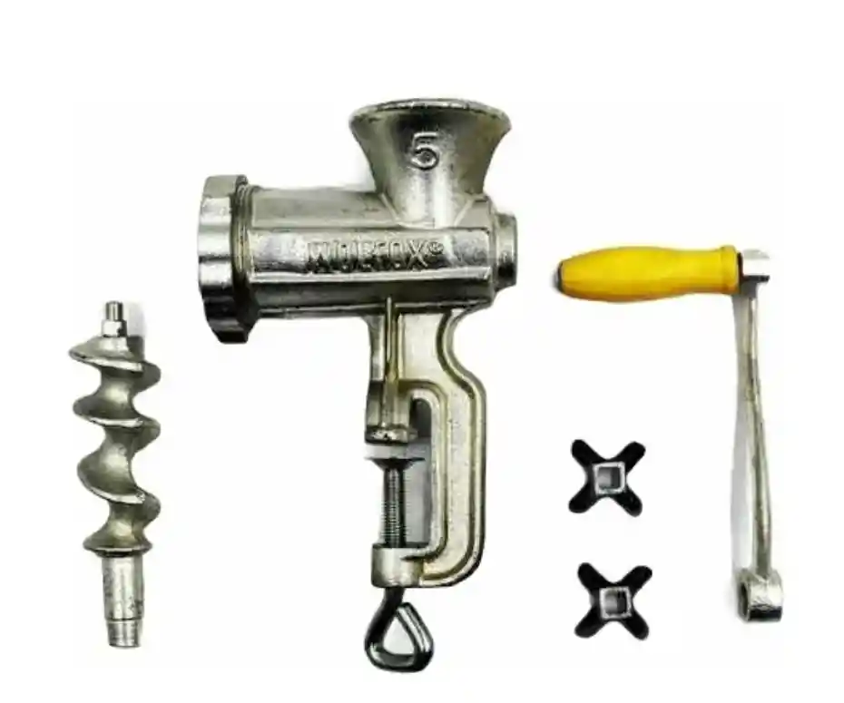 CARACTERISTICAS • Cuerpo de hierro estañado • Molino con tolva baja • Ajuste tipo prensa • Código: WF1642 • Característica: # 10 • Ancho: 12 cm • Alto: 28 cm • Peso: 3 kg • Tipo de Empaque: Caja • Marca WOLFOX