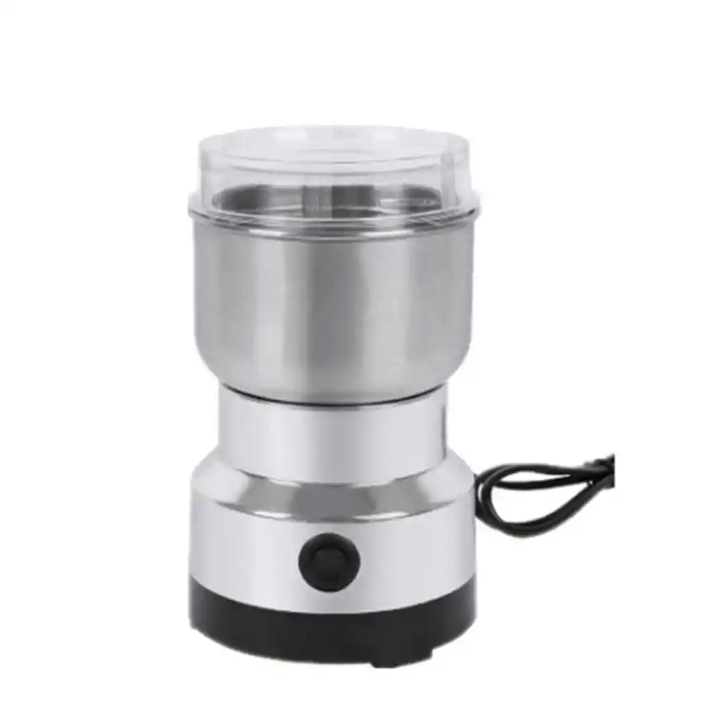 Molinillo Eléctrico para Café Granos Semillas y Especias Características: Posee un diseño de disipación de calor en la parte inferior para asegurar una larga vida útil. El motor de bajo ruido permite a su familia dormir tranquilamente mientras prepara su taza de mañana. Se recomienda limpiar con un paño húmedo, no es apto para lavar. Sólo se puede utilizar para ingredientes secos, no para alimentos húmedos. El molinillo pequeño tiene un práctico almacenamiento de cable en la base del molinillo, ideal si planea dejarlo en el mostrador de cocina. Especificación del producto Enchufe estadounidense: 110V Potencia: 200W Hoja de agitación: Hoja de doble costura Capacidad: 50 a 100g Velocidad: 24000RPM Color: plata Material: acero inoxidable. Frecuencia: 50Hz Diseñado para moler granos de café, especias, hierbas, frutos secos, granos y mucho más.