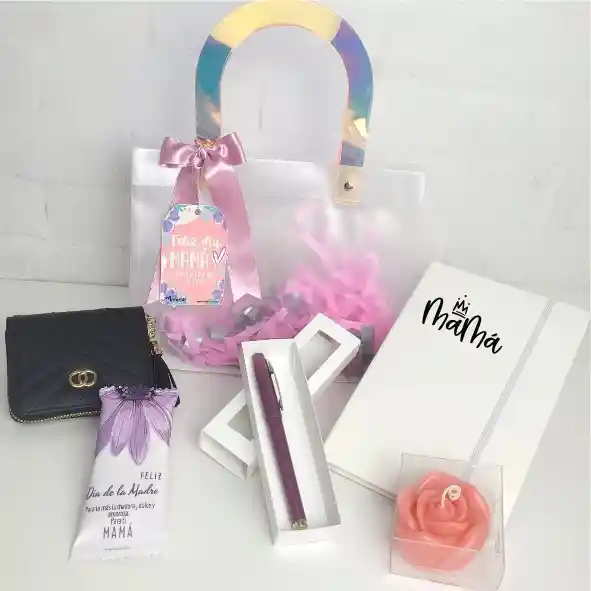 UNA LINDA BOLSA QUE LE ENCATARÁ A MAMÁ, CONTIENE: 1 AGENDA - 1 ESFERO METALIZADO - 1 BILLETERA - 1 VELA DE ROSA EN CAJITA DE LUJO - 1 CHOCOGALLETA NOTA. LOS COLORES DE LA AGENDA - VELA - BILLETERA - ESFERO, PUEDEN CAMBIAR SEGUN DISPONIBILIDA DE LA TIENDA