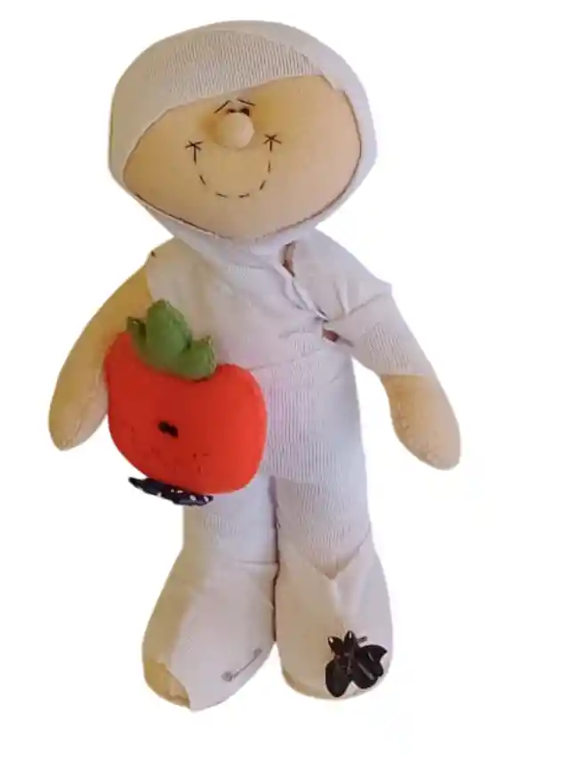 Esta divertida Momia en tela está elaborada completamente a mano con materiales suaves, resistentes y de alta calidad. Sus vendas cuidadosamente cosidas y su expresión simpática le dan un toque tierno y divertido, ideal para decorar en Halloween, regalar o coleccionar.