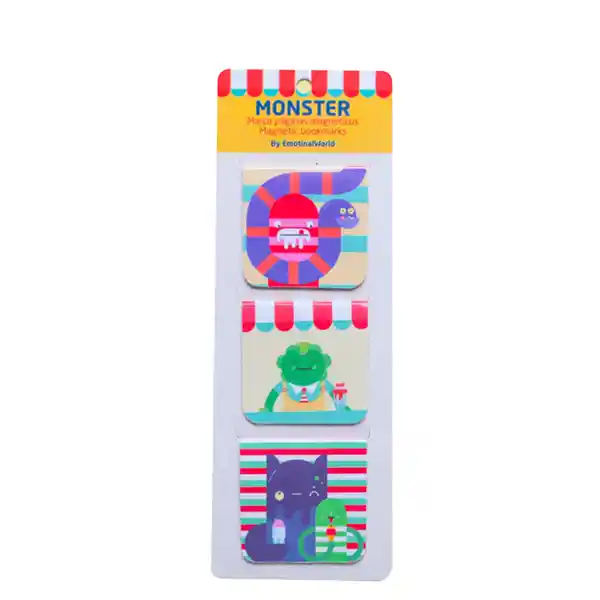 Set de 3 Marca Páginas Magnéticos de la Colección Monstruos. Úsalos en Tus Libros. Cuadernos y Agenda.