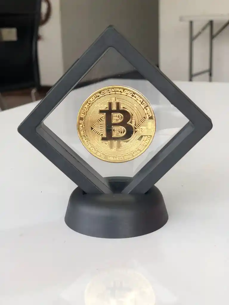 Moneda Bitcoin conmemmorativa en Marco flotante color Negro o Blanco ideal para decorar la casa u oficina Traders Trading