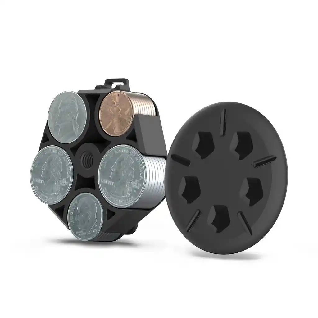 Mantén siempre organizado tus monedas y a la mano. Con 5 puestos para poner diferentes tamaños de monedas, así estarán en un solo lugar, puedes meter el monedero donde quieras, ocupa poco espacio, es de fácil acceso tanto para meterlas y sacarlas. Con diseño de clip para que puedas ubicarlo en la correa del pantalón, bolso, manteniendo los bolsillos vacíos y sin monedas que estorben, además permite ubicarlas según su tamaño y sacar las que necesites cuando sea necesario. Perfecto para llevarlo en el carro y mantener las monedas organizadas. CARACTERÍSTICAS: Gran capacidad: Puede contener, espacio para monedas de quinientos, 100 pesos de los dos tamaños, monedas de 50 pesos de los dos tamaños, con lugares designados para cada uno. Diseño portátil: Diseño de clip trasero extraíble, puede fijarlo en el bolso, el cinturón y el bolsillo de los pantalones, fácil de transportar, cómodo de usar Organizador de almacenamiento: Este organizador económico es fácil de transportar. Use nuestro divertido dispositivo para mantener sus monedas organizadas para que no haga fila en la tienda mientras busca el cambio exacto. Colección de cambio de repuesto: Este pequeño organizador de monedas es perfecto para guardar su cambio de repuesto o colección de monedas. Guarde ese cambio de repuesto y deje de desordenar su automóvil en busca de monedas sueltas. Gran regalo: Alguien que busca un estuche para monedas de colección, ¡este separador de dinero hace que almacenar monedas sea divertido! Regala organización para cualquier ocasión. ESPECIFICACIÓN: Material: ABS Color: Negro Tamaño (largo x ancho x alto): aproximadamente 6 cm x 6,5 cm x 2 cm. Peso: 25,5 gr. Peso del paquete: 33,3 gr. INCLUYE: 1 Monedero Circular con Pinza Sujetadora | Caja de Almacenamiento Portátil para Monedas.