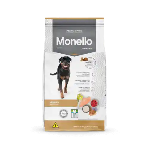 Monello - Tradicional Adulto, es un alimento premium que cubre todas las necesidades nutricionales de perros adultos, proporcionando salud y energía en todas las razas. Contiene proteínas de origen animal y vegetal, vitaminas y minerales que fortalecen y mantienen sana a tu mascota. Es de fácil digestión y absorción, enriquecido con omegas 3 y 6 que favorecen la piel y el brillo del pelo. Sus fibras ayudan a reducir el volumen y olor de las heces, facilitando la limpieza y manteniendo un ambiente higiénico.
