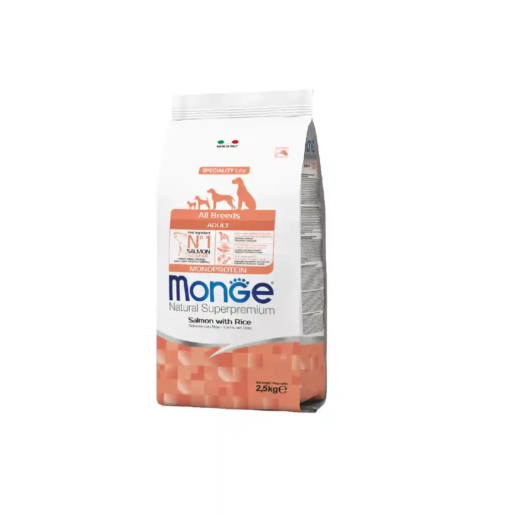 Croquetas para perros de todas las razas con carne como primer ingrediente y bajo contenido en cereales, diseñadas para tamaño, edad y estilo de vida. Desarrollado específicamente pensando en el bienestar de tu perro, gracias a la presencia de nutrientes de calidad resultantes de la investigación, Made in Italy. Formulado con una única fuente de proteína animal, el salmón es el primer ingrediente y con la inclusión de pescado fresco para una digestibilidad y palatabilidad óptimas. La receta está enriquecida con prebióticos xilo-oligosacáridos (XOS) de última generación para apoyar el bienestar intestinal.