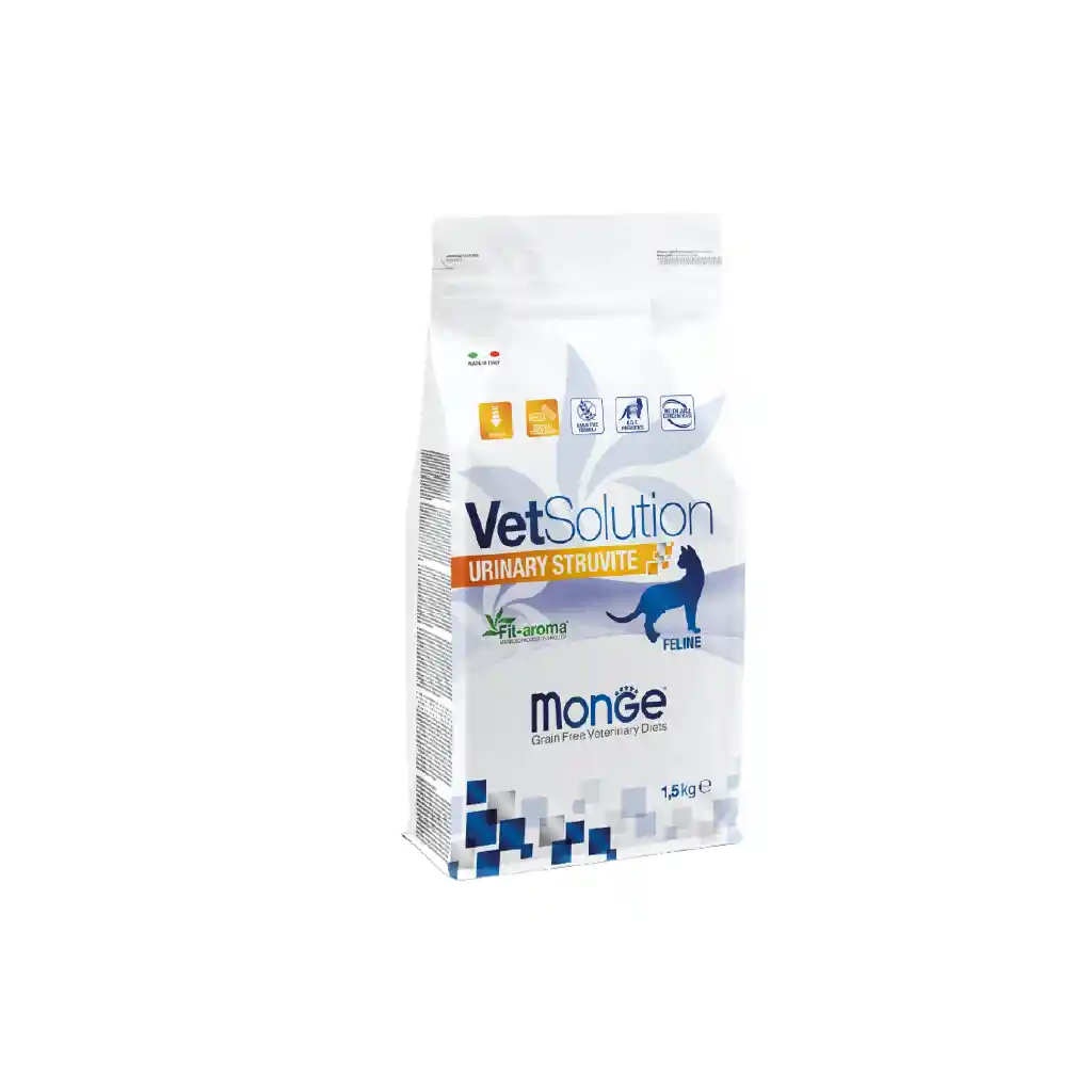 Alimento dietético completo formulado para la disolución de cálculos a base de estruvita, para la reducción de las recurrencias de cálculos de estruvita y para el síndrome urológico felino.