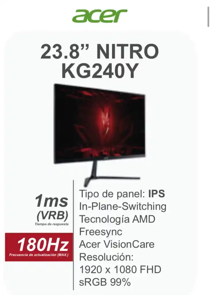 Tipo de panel: IPS In-Plane-Switching Tecnología AMD Freesync Acer VisionCare Resolución: 1920 x 1080 FHD sRGB 99% EXPOTECNOLOGIA 3505945136