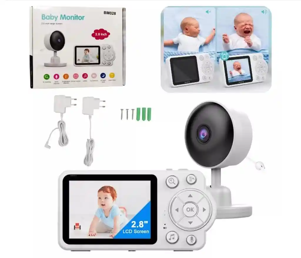 Monitor de bebé con cámara panorámica remota inclinable con zoom. Pantalla monitor de bebé con cámara y audio, Visión nocturna muy clara, Conversación bidireccional, Indicador de temperatura, canciones de cuna y rango de 300metros. No necesita internet, solo conectar y listo, puede ver y hablar con su bebe en un gran rango de 300metros.