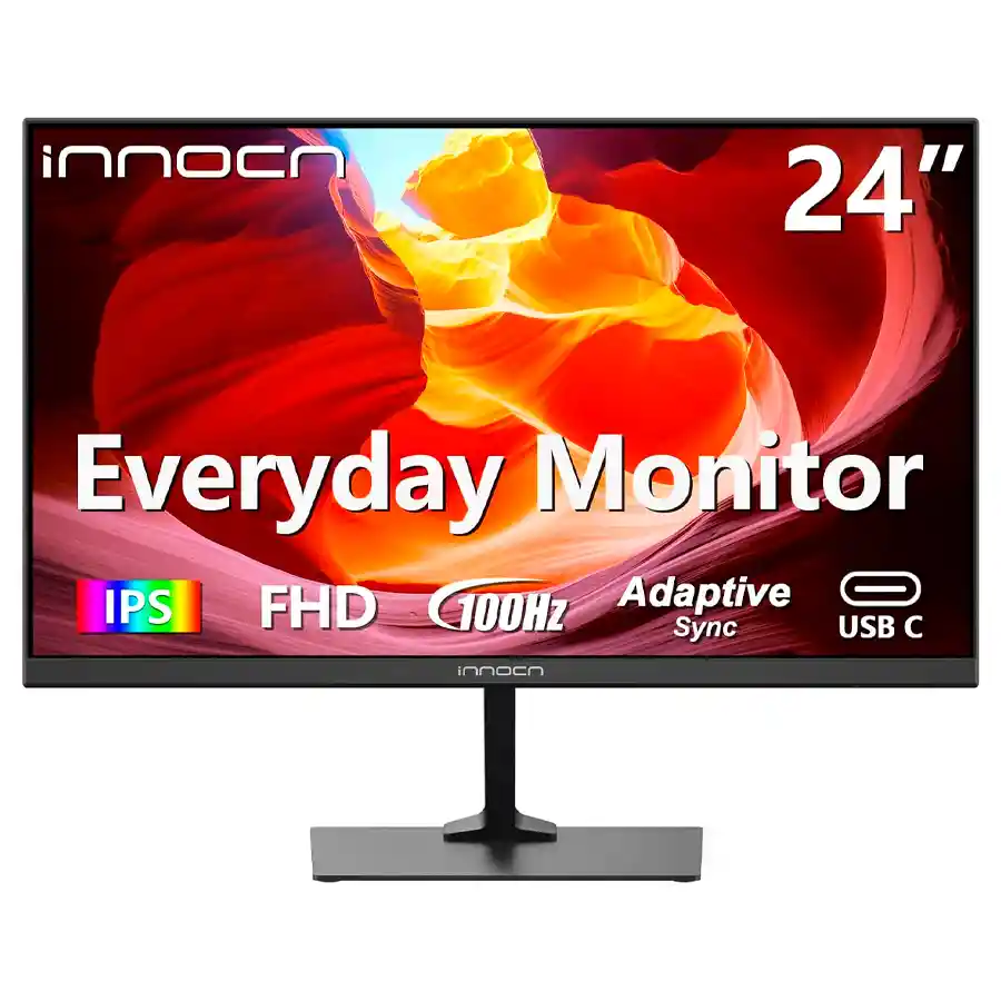 Monitor Innocn 24C1F de 24" 1080p: Colores vibrantes y rendimiento fluido. Mejora tu espacio de trabajo o configuración de juegos con el monitor Innocn 24C1F de 24" 1080p USB-C, que ofrece imágenes impresionantes y conectividad perfecta para una experiencia versátil e inmersiva. El monitor perfecto para el día a día. Tanto si trabajas desde casa, juegas o ves películas, el Innocn 24C1F es la solución ideal para una experiencia visual fluida y de alta calidad. Gracias a su fácil instalación y conectividad completa, este monitor se integra a la perfección en cualquier espacio de trabajo o configuración de entretenimiento. Características principales. Colores vibrantes con pantalla IPS y resolución Full HD : Disfruta de imágenes nítidas gracias a la resolución Full HD de 1920 x 1080p y la tecnología IPS, que ofrece colores vibrantes y detalles definidos desde amplios ángulos de visión. Perfecta para el trabajo creativo, la navegación web y la creación de contenido, la precisión de color sRGB del 99 % garantiza imágenes realistas en todo momento. Frecuencia de actualización de 75 Hz : fluida y rápida. Tanto si ves tus series favoritas en streaming como si disfrutas de juegos de ritmo frenético, la frecuencia de actualización de 75 Hz da vida a la acción con un rendimiento fluido y sin retardo. Olvídate del tearing y disfruta de una fluidez de movimiento excepcional. Diseño prácticamente sin bisel para configuraciones multimonitor perfectas : El diseño elegante y minimalista cuenta con un marco de tres lados prácticamente sin bisel, lo que permite un mayor espacio en pantalla y configuraciones multimonitor sin esfuerzo que mejoran la productividad y el flujo de trabajo. Múltiples opciones de conectividad : Mantente conectado con opciones versátiles, que incluyen 1 puerto USB-C de 65 W, 2 puertos USB-A, 1 puerto USB-B, 1 puerto J45 y 1 salida de audio. Ya sea que lo uses con una computadora de escritorio, portátil, mini PC o consola de videojuegos, este monitor está diseñado para satisfacer todas tus necesidades de conectividad con facilidad. Ajuste ergonómico de inclinación para mayor comodidad : Ajuste el ángulo de la pantalla según sus preferencias con un rango de inclinación ergonómico de -5° a 15°, lo que garantiza una comodidad óptima para largas horas de trabajo o sesiones de juego. Especificaciones Dimensiones (totales): 20,2 pulgadas (alto) x 21,2 pulgadas (ancho) x 7,6 pulgadas (profundidad) Peso: 12,4 libras Estado de los aparatos electrónicos: Nuevo Número de puertos USB: 4 Relación de aspecto: 16:9 Relación de contraste: 1000:1 Relación de contraste estático Tipo de pantalla: Panel IPS Certificaciones industriales o gubernamentales: No figura en la lista ni está certificado. Resolución de pantalla: 1920 x 1080 Estándar de montaje VESA: 75x75 Frecuencia de actualización de pantalla nativa: 75 Hz Tiempo de respuesta: 5 ms Número de puertos HDMI: 1 Brillo de pantalla (cd/m2): 300 Número de puertos de pantalla: 1 Número de puertos DVI: 0 Número de puertos VGA: 0 Tamaño de pantalla: 23,8 pulgadas