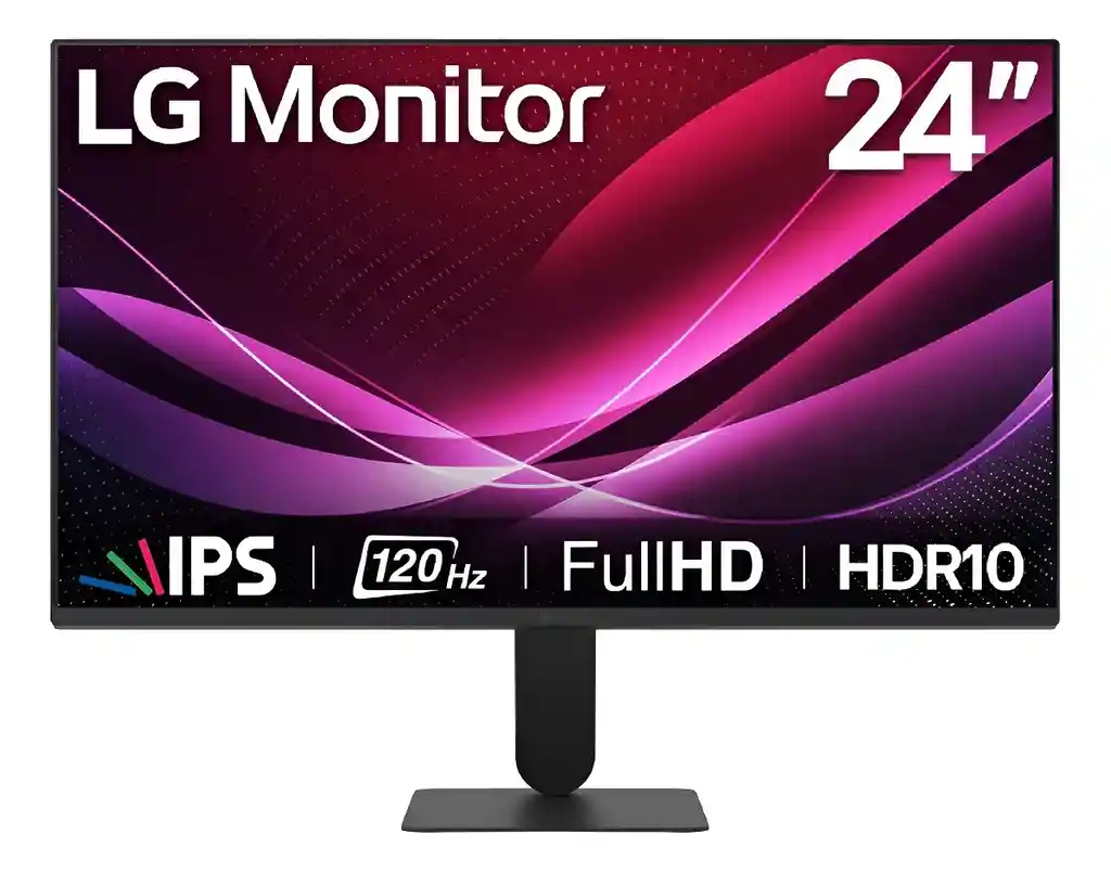 MONITOR LG DE 24 “IPS FHD 24U411A-B Características principales: Resolución Full HD para imágenes nítidas y realistas en cada uso Tasa de 120Hz y 1ms MBR para transiciones más fluidas y rápidas Diseño sin bordes en 4 lados para mayor inmersión visual HDR10 y sRGB 99% (Típ.) para colores vivos y precisos Diseño ergonómico con inclinación ajustable de -5° a 20° Dynamic Action Sync y Black Stabilizer para juegos sin límites 23.8" Full HD IPS Diseño delgado. Colores reales La pantalla Full HD (1920x1080) ofrece imágenes nítidas con sRGB 99% (Típ.), 250 nits de brillo y una relación de contraste 1500:1 para visuales claros y precisos. Colores vivos que te sumergen en la acción Con HDR10 y sRGB 99% (Típ.), ofrece colores precisos y vibrantes para juegos inmersivos, trabajo creativo y entretenimiento.