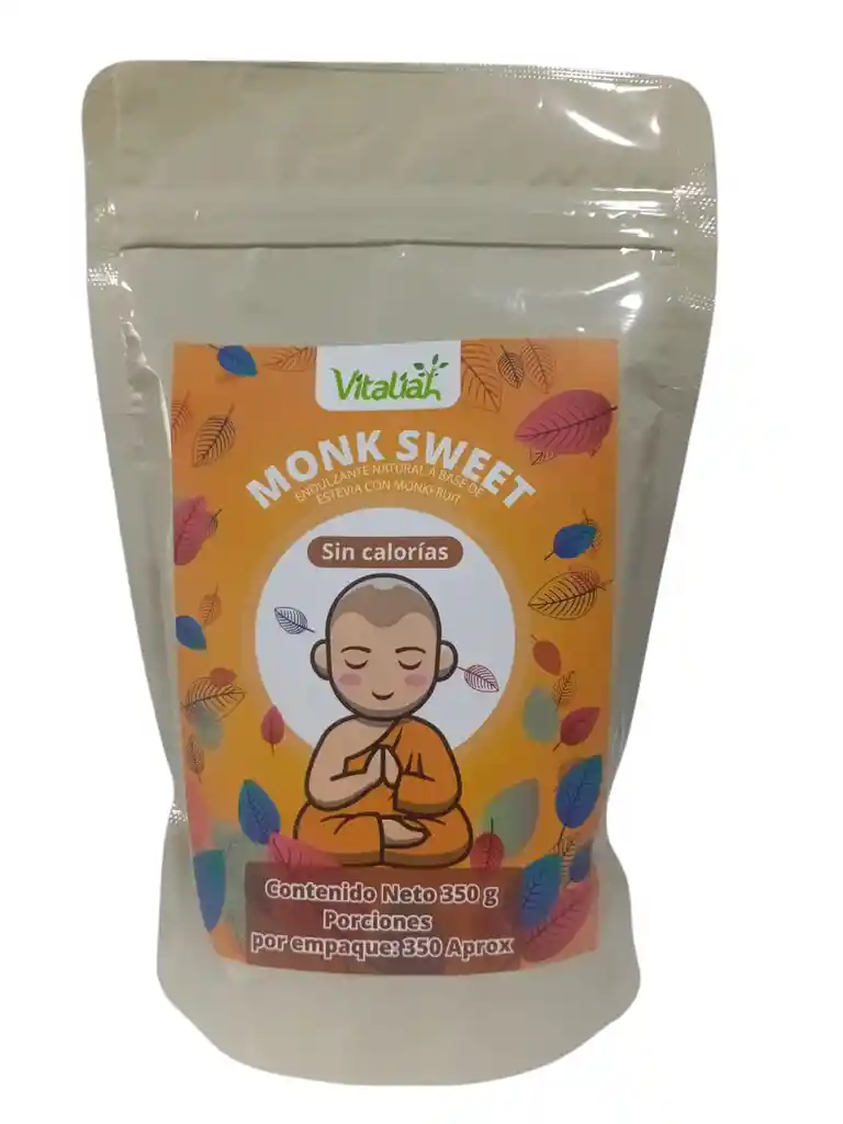Endulzante natural en polvo que combina fruto del monje (Monk fruit) y stevia, contiene 350 porciones aproximadamente. No aporta calorias, no eleva los niveles de azucar en la sangre, recomendada para personas con diabetes, obesidad o quienes siguen dietas keto