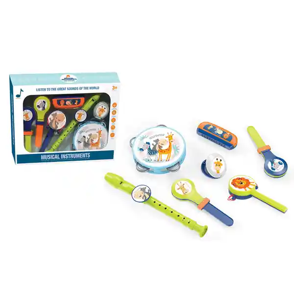 Set Monkey Brands Contiene 7 Unidades. Instrumentos Musicales: Pandereta Flauta Maraca Castañuela Dulzaina y Más.