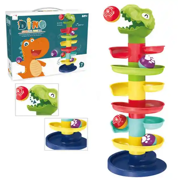 Modelo Dinosaurio. Rueda la Bolita Con 6 Niveles. Inserta la Bolita Por la Boca Del Dinosaurio Para Que la Veas Rodar Hacia Abajo y Salir Disparada al Final.