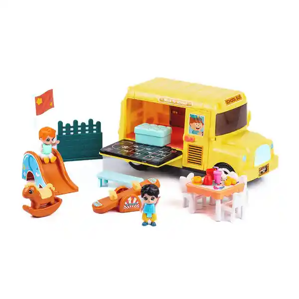Lleva tú Propio Patio de Juegos Con Muñecas a Todos Lados Con Este Hermoso Bus Escolar Que Incluye Múltiples Accesorios: Una Mesa 3 Sillas un Sube y Baja 2 Caballitos Balancín un Sube y Baja un Rodadero Una Bandera y 3 Personajes Para Recrear la Escena Así Podrás Tener tú Propio Patio de Juegos y Busecito Rodante. 30 Días de Garantía Por Faltante de Piezas y/o Defectos de Fabricación Presentando Factura y Empaque Original Del Producto. No Aplica Garantía Por Malos Usos Del Producto Uso: Retire Completamente la Envoltura Antes de Usar Puede Contener Piezas Pequeñas - Contiene Más de 1 Pieza - Nombre Importador: Dima Colombia Sas - Usar Bajo Supervisión de un Adulto Responsable Advertencias y Riesgos: - No Consumir - Puede Ser Tóxico - Puede Ser Inflamable - Usar Bajo Supervisión de un Adulto Responsable - Retire Completamente la Envoltura Antes de Usar - Puede Contener Piezas Pequeñas.