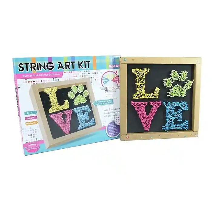Este Fantástico Kit de Arte Con Hilos Está Diseñado Para Fomentar y Promover la Creatividad y el Estilo de Las Niñas. Contiene Pines Plásticos Plantilla Con Palabra Love Hilos Para Decorar y Hacer tu Hermoso Cuadro. Es Muy Simple y Fácil de Usar. Este es un Regalo Perfecto Para Cualquier Niña de 6 Años. Tamaño Caja: 32 Centímetros de Largo x 28 Centímetros de Alto x 4 Centímetros de Ancho Edad Recomendada: 6 Años en Adelante