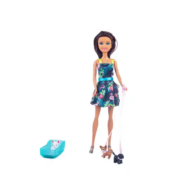 Contiene 4 Unidades. Muñeca Sweet Girl de 29 cm de Altura 1 Und + Mascotas 3 Und. Pasea Por el Parque Con Sus Mascotas Jugar Con Muñecas Permite a Los Niños Desarrollar la Empatía y Las Habilidades Sociales Que Son Determinantes en el Futuro Éxito Emocional Académico y Social de Los Niños.