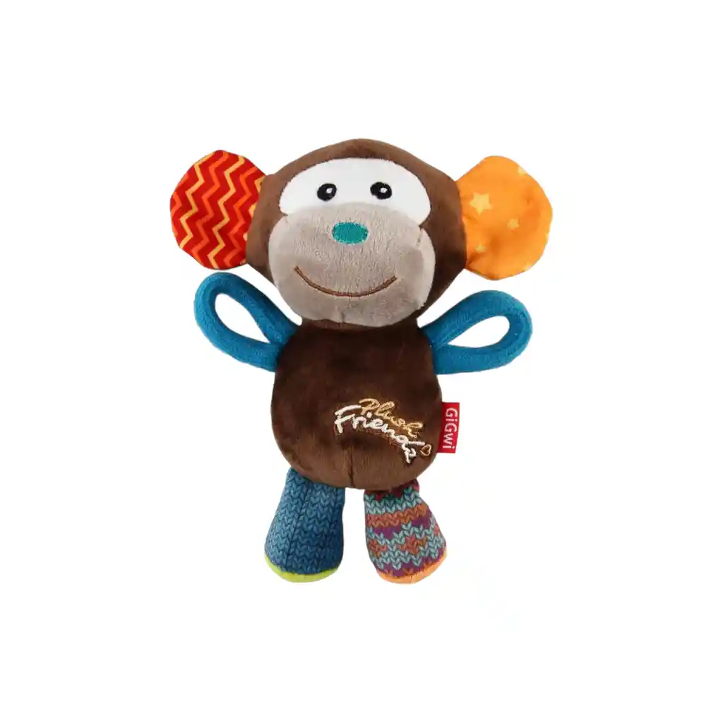 Peluche interactivo diseñado para estimular el instinto de juego de tu perro. Este mono Gigwi cuenta con un chirriante interno que mantiene a tu mascota entretenida durante horas, promoviendo actividad física y mental. Su tamaño generoso lo hace ideal para perros de diferentes tamaños, mientras que la textura suave del peluche proporciona comodidad al morder y abrazar. Perfecto para sesiones de juego supervisadas o como compañero de entretenimiento diario. Refuerza el vínculo entre tú y tu mascota a través del juego interactivo.