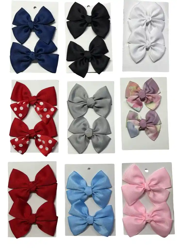 Moños Pequeños para el Cabello de Niña – Pack de 2 Unidades ¡Pequeños detalles que hacen la diferencia! Este set incluye 2 moños pequeños para el cabello de niña, combinados en diferentes colores para crear looks divertidos y tiernos. Disponibles en varios tamaños y diseños para elegir el que mejor se adapte a cada ocasión. 🎀 Características: Pack de 2 moños pequeños Combinaciones de colores variados Diferentes tamaños disponibles para escoger Suaves, cómodos y seguros para el cabello de tu niña Fáciles de colocar y con excelente sujeción 📌 Disponibilidad sujeta a stock. Consulta los modelos y colores disponibles antes de hacer tu pedido.