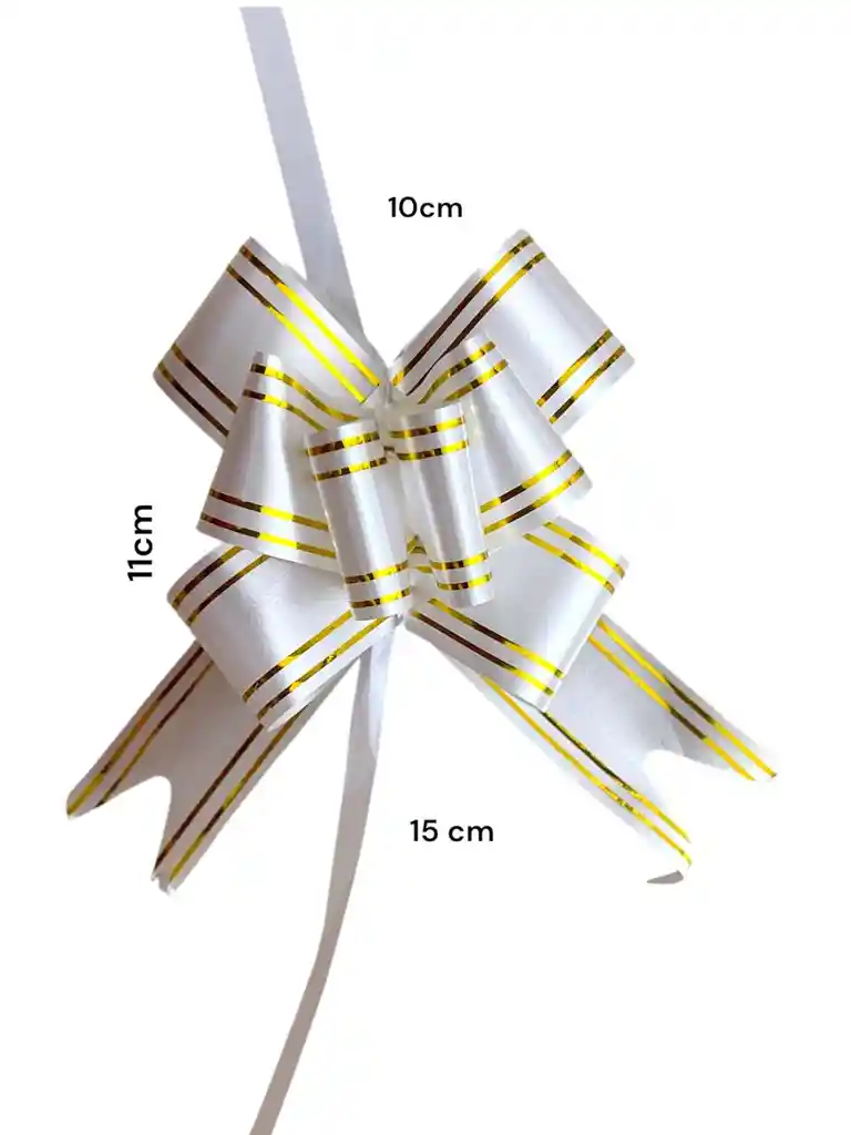 Moño Lazo Para Regalo Blanco con bordes Dorados