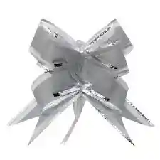 Medidas del moño Armado: Parte superior 16cm, alto 20 cm y parte inferior 25 cm Este moño mágico plata es perfecto para darle un toque especial a tus regalos. Se arma de manera muy sencilla: solo tienes que halar una de las cintas y el moño se abre, quedando listo para decorar. ¡Un detalle práctico y bonito para hacer cualquier obsequio aún más especial!