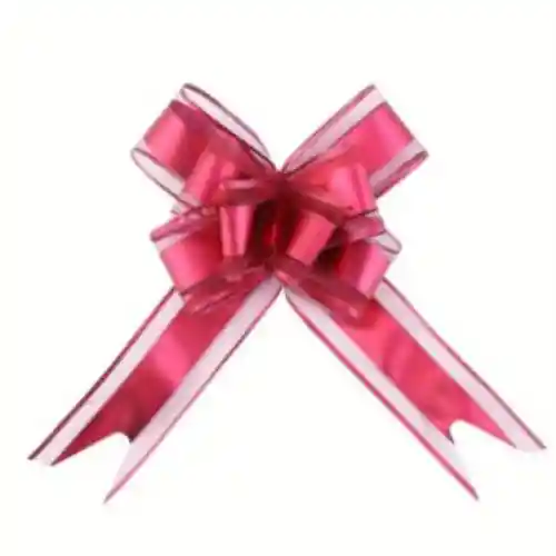 Moños pequeño armable 7 x 7 cm de color rojo con detalle de velo a los lados.