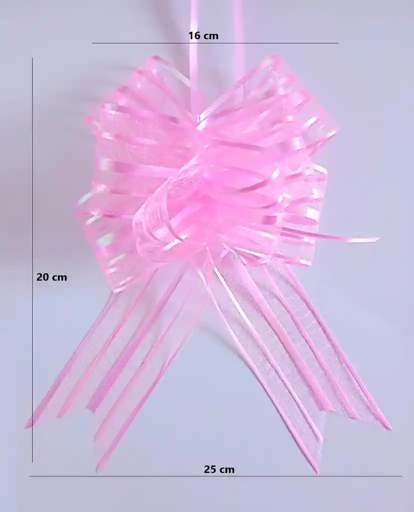 Moño Para Regalo en organza Metalizado Color Rosado. Medidas del moño armado. Lado superior 16 cm, Alto 20 cm y lado inferior 25 cm. Moños de buena calidad de colores vivos, ideal para decorar las cajas de regalo, las botellas de vino, champaña y todo tipo de detalle. Estos lazos de cinta son muy fáciles de montar y se pueden armar en cuestión de segundos, simplemente tira de dos cuerdas de cinta interior para formar un hermoso lazo. Se envia sin armar