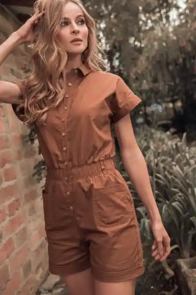 Fondo Entero Cuello de Doblar Perilla Completa Manga Corta Rodada Con Puño de Doblar Acentado Con Presillas Pretina Enresortada Con Pasadores Bolsillos de Parche la Parte Delantera Del y la Parte Trasera Guardapolvo Acentado.