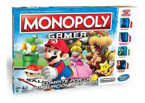 El clásico juego de negociar propiedades con un nuevo giro al unirse al mundo de los videojuegos. ¡No necesitas controles! Compite con tus personajes de videojuegos favoritos y combate a tus oponentes en el tablero. Al combinar el poder del juego Monopoly y Nintendo, podrás completar niveles (comprar propiedades), recolectar monedas (dinero), luchar, ¡y hasta armar tu propio dado de personaje! ¡Adquiere en America Store Computer una amplia variedad de Juguetes de la marca Hasbro justo en la puerta de tu domicilio! Contenido del Empaque: Tablero 4 Tokens de Personaje Nintendo (Mario, Princesa Peach, Yoshi y Donkey Kong) 4 Tarjetas de Personaje 4 Tarjetas de Recordatorios 8 Tarjetas de Monstruos 10 Tarjetas de Título de Propiedad 1 Dado Numerado 1 Dado de Poderes Especiales *Edad Recomendada 8 años