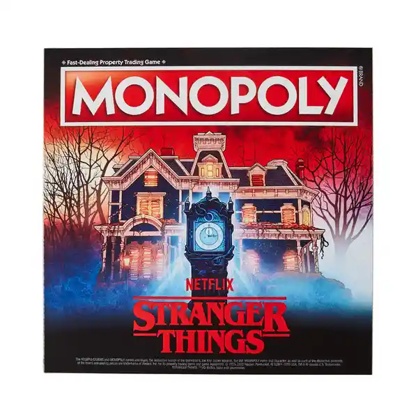 ¡Es 1986 y Una Fuerza Oscura Conocida Como Vecna Está Abriendo Las Puertas al Revés en Hawkins y Más Allá! Inspirado en la Temporada 4 de la Serie Stranger Things de Netflix el Juego de Mesa Monopoly: Stranger Things Edition es Imprescindible Para Los Fanáticos. Gira la Manecilla Del Ominoso Reloj de Pie de Vecna Para Averiguar Dónde Están Las Puertas y Luego Corre Para Cerrarlas. Los Jugadores Ganan Dinero en el Camino Cobrando Alquiler a Otros Jugadores y el Último Jugador Con Dinero Cuando Todos Los Demás Jugadores Han Quebrado Gana. Pero ¡Cuidado! el Juego También Termina si Vecna Abre Suficientes Puertas Para Que Cada Ubicación Esté al Revés. ¡Entonces Todos Los Jugadores Pierden! el Juego es Para 2-6 Jugadores y es un Gran Juego de Mesa Para Adultos y Adolescentes Mayores de 14 Años. Juego de Mesa Monopoly Para Adultos y Adolescentes: Los Fans Disfrutarán de Este Juego Monopoly Inspirado en la Temporada 4 de la Serie de Netflix Stranger Things Vaya Más Allá de Hawkins: el Tablero de Juego Lleva a Los Jugadores Más Allá de Hawkins a Nuevas Ubicaciones Que Aparecen en la Temporada 4 de Stranger Things. Los Jugadores Agregan Cintas de Casete a Las Ubicaciones Las Tarjetas Del Club Cerebro y Hellfire Agregan Emoción al Juego el Misterioso Reloj Del Abuelo de Vecna: ¡Hacer Rodar el Símbolo Del Reloj en el Dado Significa Que Vecna Ha Abierto Una Puerta al Revés! Los Jugadores Deben Hacer Girar el Reloj Para Descubrir Dónde Acecha el Peligro.