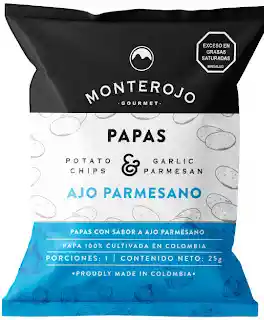 Irresistibles chips crocantes de papas gruesas y rústicas con un sabor a ajo y Parmesano, un sabor único. Sin gluten, sin colesterol y sin grasas trans.